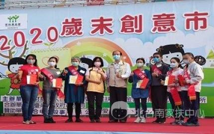 北台南家扶12月6日在新營體育場辦舉辦 『109年家扶感恩行動~歲末創意市集』活動,表揚六戶自強家庭與六位孝悌兒童,同時頒發31名才藝績優獎助學金,台南市政府社會局長陳榮枝親自出席頒發自強...