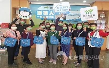 「全家一起來做好事,讓愛不斷在家中發生」,14日北台南家扶邀請加入寄養服務分別滿28年、24年、15年、10年及1年的林妙香、吳碧雲、陳姿秀、沈淑琴、余麗娜五人共同呼籲家庭主婦族群踴躍報名擔...