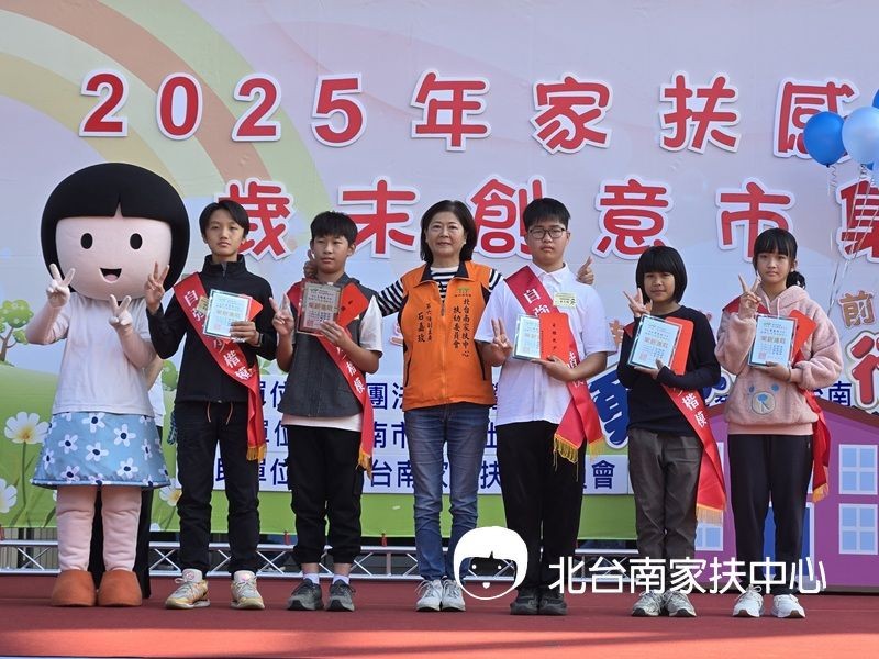 (新營訊)「揮別陰霾、迎向希望」經歷年初地震、丹娜絲颱風,北台南家扶看見家庭的勇敢面對、付出行動、堅持不放棄,7日於新營區體育場舉辦『家扶感恩行動~歲末創意市集』活動,台南市社會局少婦科長許乃文,新營區主任秘書鄭添福等蒞臨共同為家庭打氣。活動也表揚10戶自強家庭與兒少分別是柳營區李桂金、善化區吳金絨、東山區王林素卿、歸仁區林佳蓉、仁德區陳玲君以及分別是後壁區黃天賜、善化區李昱宸、永康區王柏盛、七股區許思瑜、東山區曾若瑄,他們用真實的生活故事告訴大家:即使遭遇困難挫折,依然能扶持彼此,堅韌前行;當天也頒發53名才藝績優獎助學金,肯定孩子們在音樂、運動、舞蹈等多元領域的努力,同時透過創意市集安排29戶扶助家庭與23個愛心贊助單位合力設攤,提供美味小吃、點心、義診、義剪、氣功等服務,以及菜寮朝安宮太鼓團與家扶才藝班等表演,讓受助的850戶近2500名親子在熱鬧與溫暖中,感受「一同走過」的力量。