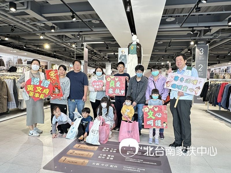 重視社會公益的台灣本土服飾品牌,NET主富服裝股份有限公司,自民國98年莫拉克風災後,每年皆會捐贈愛心提貨券予全台各縣市家扶中心,行事作風低調的董事長黃文貞為善不欲人知,甚少出現在公開活動中,其出身於雲林縣曾透過工作團隊表示,年幼時貧困的家境,沒有足夠的資源,經歷過辛苦的成長歲月,因此對於家扶所協助的經濟弱勢兒少家庭狀況都能感同身受,尤其在過年前殷殷期盼可以有一件新衣好過年的心情,因此每年延續著贈予提貨券的善舉,110年開始更加碼送全國家扶受助一歲以下幼兒每童一萬元提貨券買新衣。115年北台南也獲贈16名新生兒每人一萬元購衣卷,減輕新生兒家庭育兒負擔。