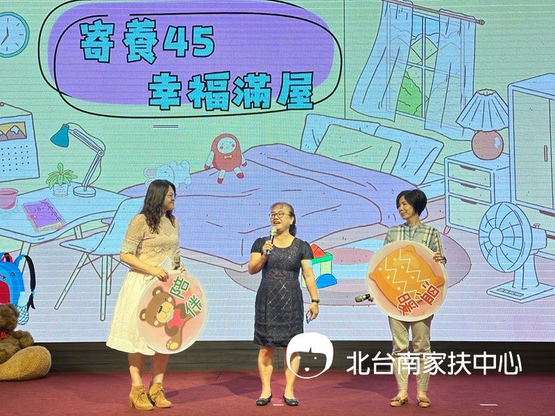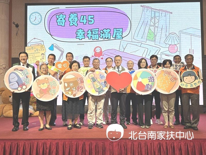 家扶基金會自民國67年率先全國試辦家庭寄養服務,自民國70年起陸續接受各縣市政府委託,今年是家扶基金會承接政府的寄養家庭服務方案的第45年,為了讓民眾更了解寄養服務和加入服務行列,社會局葉誌明副局長、永康區李皇興區長、家防中心施清發主任、少婦福利科許乃文科長、北家扶呂明憲主委、南家扶楊政達主委及兩戶寄養家庭代表許春生/林姿巧賢伉儷、鍾月蓉女士分別拿象徵「愛」的愛心、「探索」的背包、「希望」的檯燈、「溫飽」的食物、「遊戲」的球、「溫暖」的抱枕、「陪伴」的小熊,說明當孩子在原生家庭發生重大變故或遭受不當照顧被安置時,寄養家庭打開家門提供這些基本的食衣住行育樂的同時,也給予孩子們滿滿的愛與陪伴,讓孩子在寄養服務中找回「家」的溫暖,也【讓家,不再是想像】。