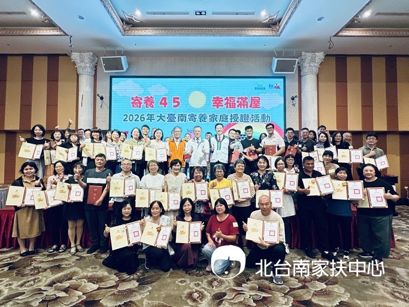 『寄養45 幸福滿屋』2026年臺南市寄養家庭授證活動 81戶寄養家庭獲授證表揚 協助照顧全市逾80名寄養兒少