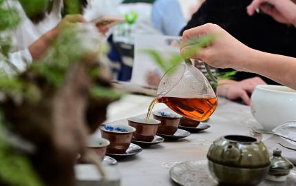 南台中家扶中心公益茶會,席開15桌、百餘位茶客及茶師齊聚,凝聚社會愛的力量,尚有550份心願禮物待認捐。