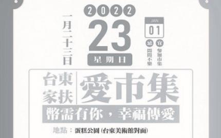 1月23日(星期日)在台東美術館蛋糕公園「家扶‧愛市集~貧困家庭兒童助學活動」圓滿結束。感謝來自全台各地捐贈市集物品,台東各大店家團體參與攤位與物資贊助,當天民眾熱情響應到活動現場採購...