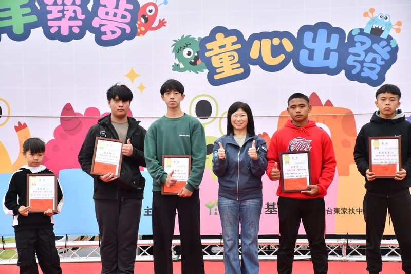 本次活動主題儀式以「積木」、「築夢」與「協力」為核心意象,由台東家扶扶幼主委及貴賓及自強兒少一同拿取積木,象徵兒童權利的建立與實踐,需要社會大眾共同參與、逐步堆疊與持續支持。透過象徵性的積木堆疊儀式,呈現每一項兒童權利如同重要基石,唯有在穩固的基礎上,孩子才能安心成長、勇敢追夢。活動亦傳達「築夢」代表對未來的希望與創造,「童(同)心」則象徵與孩子同心齊力,共同守護兒少權益,呼籲社會各界攜手同行,陪伴孩子踏上屬於自己的夢想旅程。