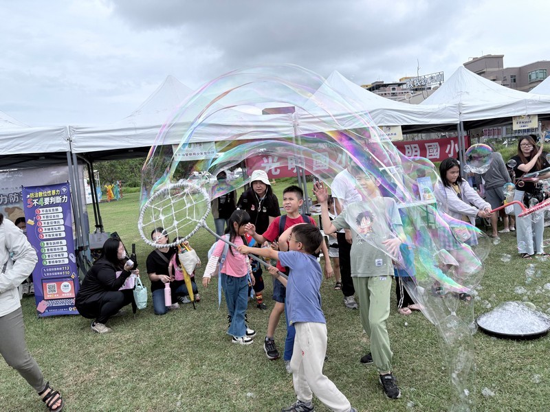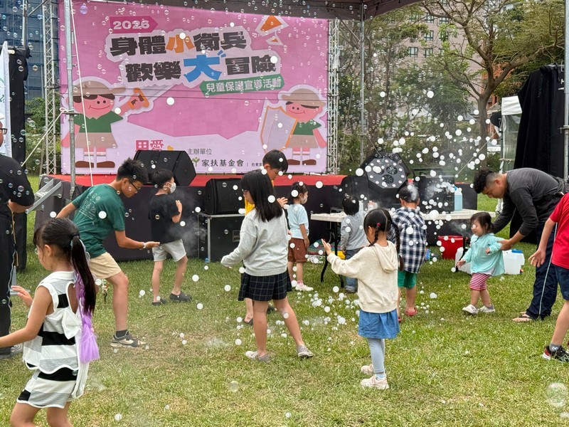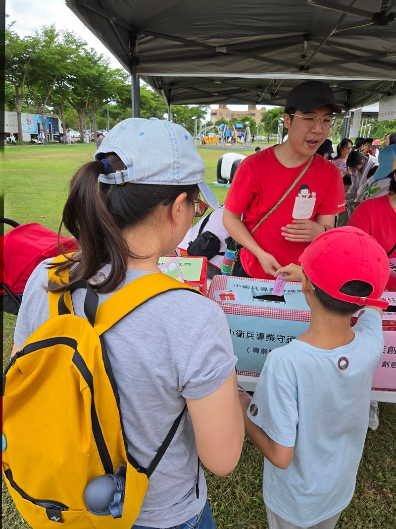本次活動以「身體界線」為主軸,規劃多元闖關關卡,讓親子在互動遊戲中學習辨識不當接觸與建立自我保護觀念,同時提升家長的親職知能。現場設置親子DIY體驗區,包括盾牌彩繪及守護徽章製作,孩子們透過創作將「勇氣」、「保護」、「尊重」等正向概念具體化,象徵成為守護自己的「身體小衛兵」。活動下午由「雞蛋老師」帶來精彩的互動表演與帶動跳,吸引大小朋友一同參與炒熱現場氣氛,增進親子間的互動與情感連結。另本次活動特別邀請學校及團體學童參與規劃與設攤,讓兒少不僅是被保護的對象,更成為倡議者,實際參與兒童保護宣導行動,展現兒少表意權與社會參與的實踐成果。