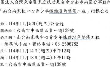 「南台南家扶中心青少年據點澄角整修工程」招標公告