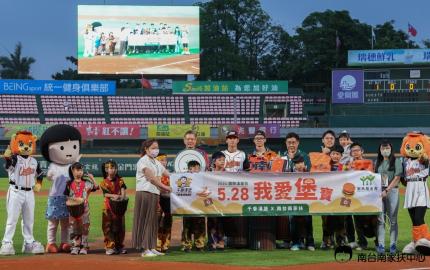 為響應《528國際漢堡日》,台南在地知名的千香漢堡與統一7-ELEVEn獅舉辦『528我愛寶堡』活動,邀請南台南家扶中心40位親子一起在台南市立棒球場享用美味的漢堡跟欣賞好看的『獅猿大戰』!