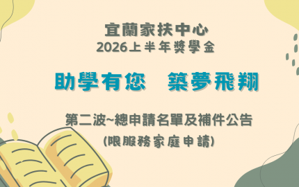 2026年3月13日(五)前郵寄至宜蘭家扶中心申請(申請人請依戶籍地向當地各家扶中心提出申請),逾期概不受理,以郵戳為憑。