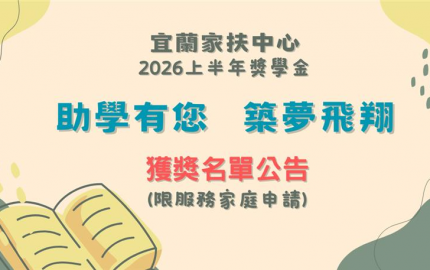 宜蘭家扶中心2026上半年度獎學金獲獎公告