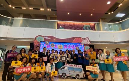 國際獅子會300-D1區施松吉總監攜手虎女獅子會邱淑香會長,率領眾獅友啟動「物資傳愛專車」捐贈活動,縣長張麗善、副縣長謝淑亞見證下由雲林家扶陳燦勲主委代表受贈,讓家扶社工們得以開著「獅子...