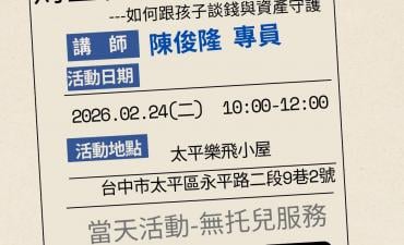 🔰二月講座日期/主題:02/24(二)10:00-12:00/財金智慧教育與信託---如何跟孩子談錢與資產 🔰三月講座日期/主...