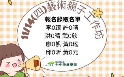 11/14(四)藝術親子工作坊報名成功名單,如海報