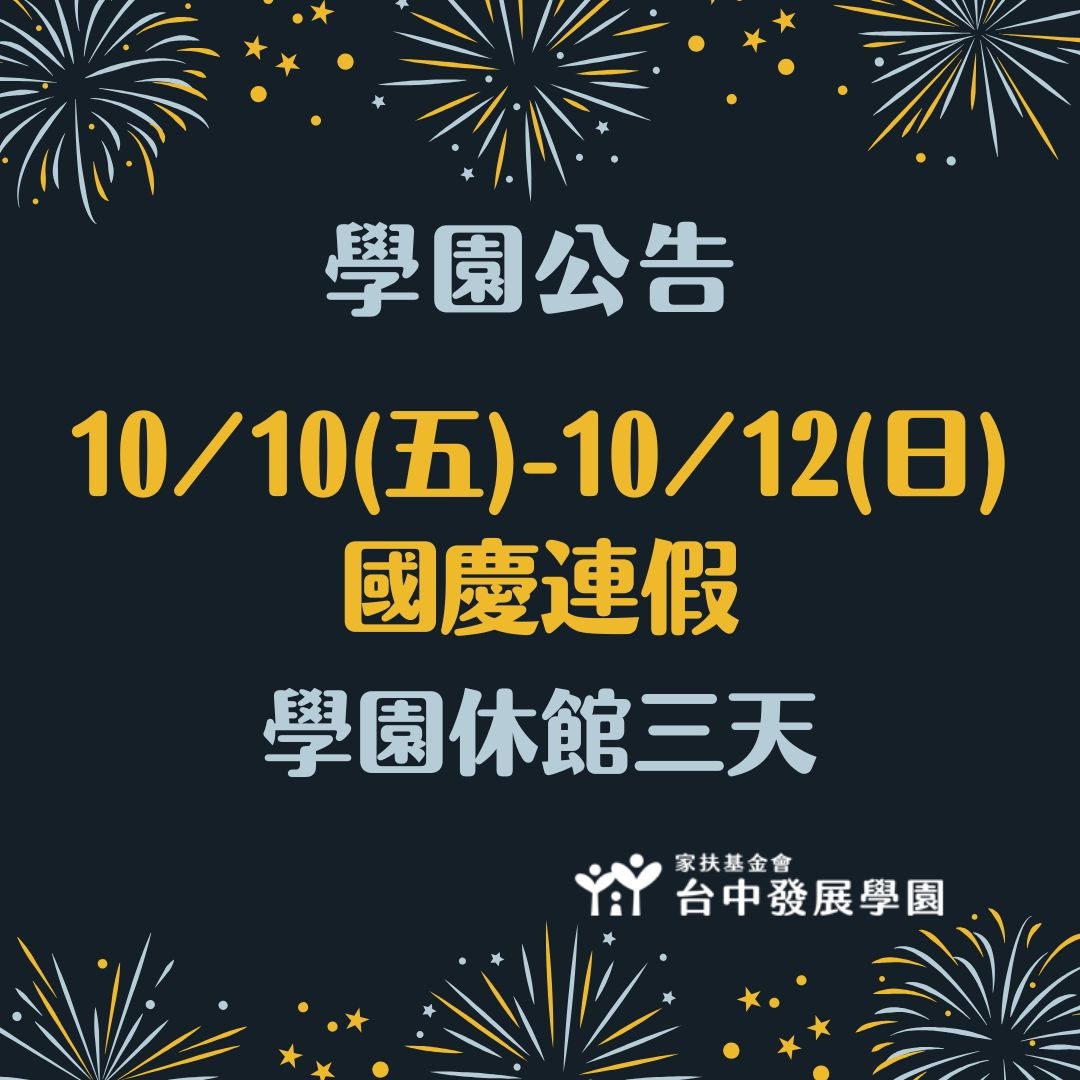 📌 休館公告|10/10(五)~10/12(日)國慶連假,學園休館三天