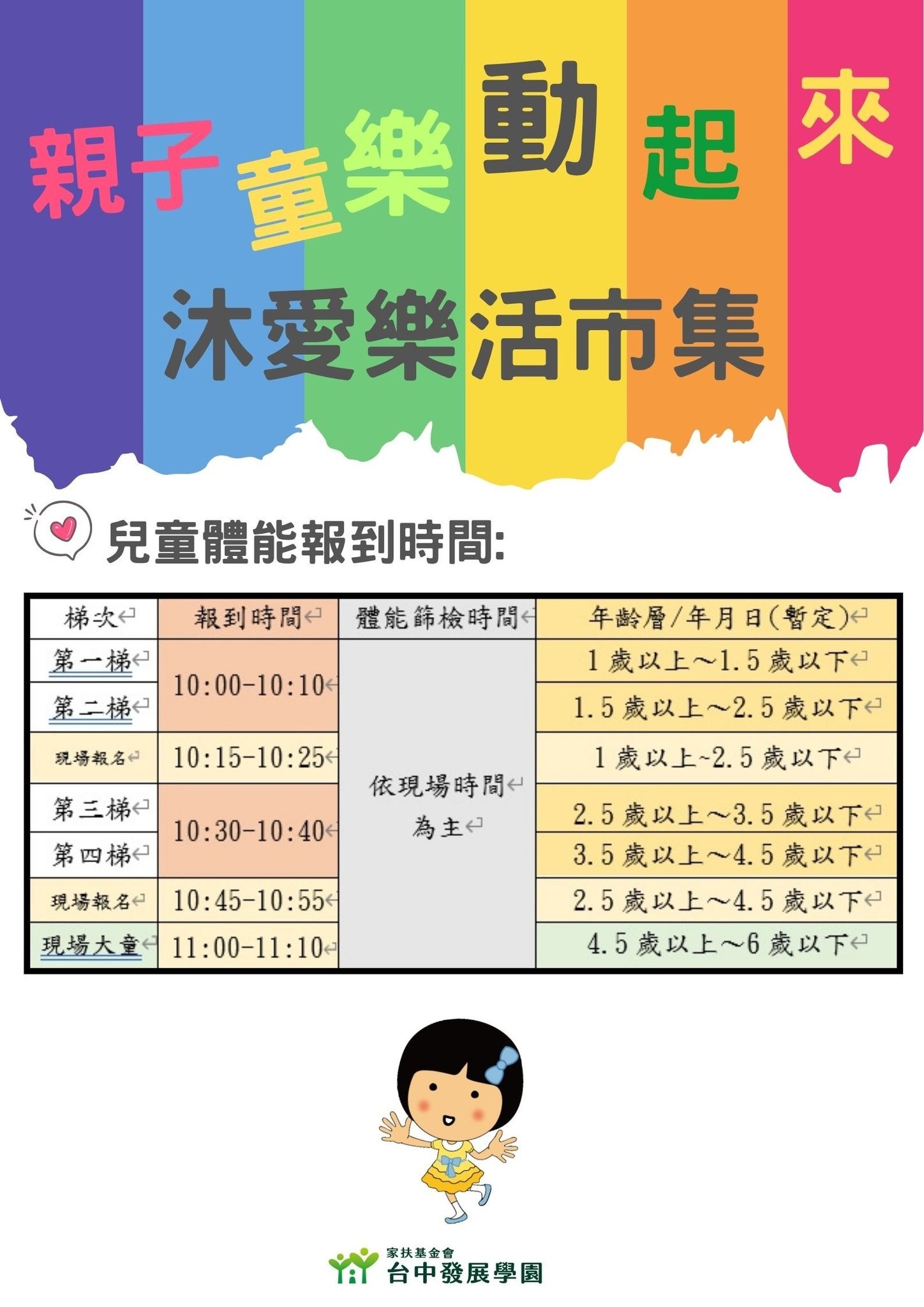 📣兒童體能活動還有名額,當天1.5歲-4.5歲的兒童可以現場報名。