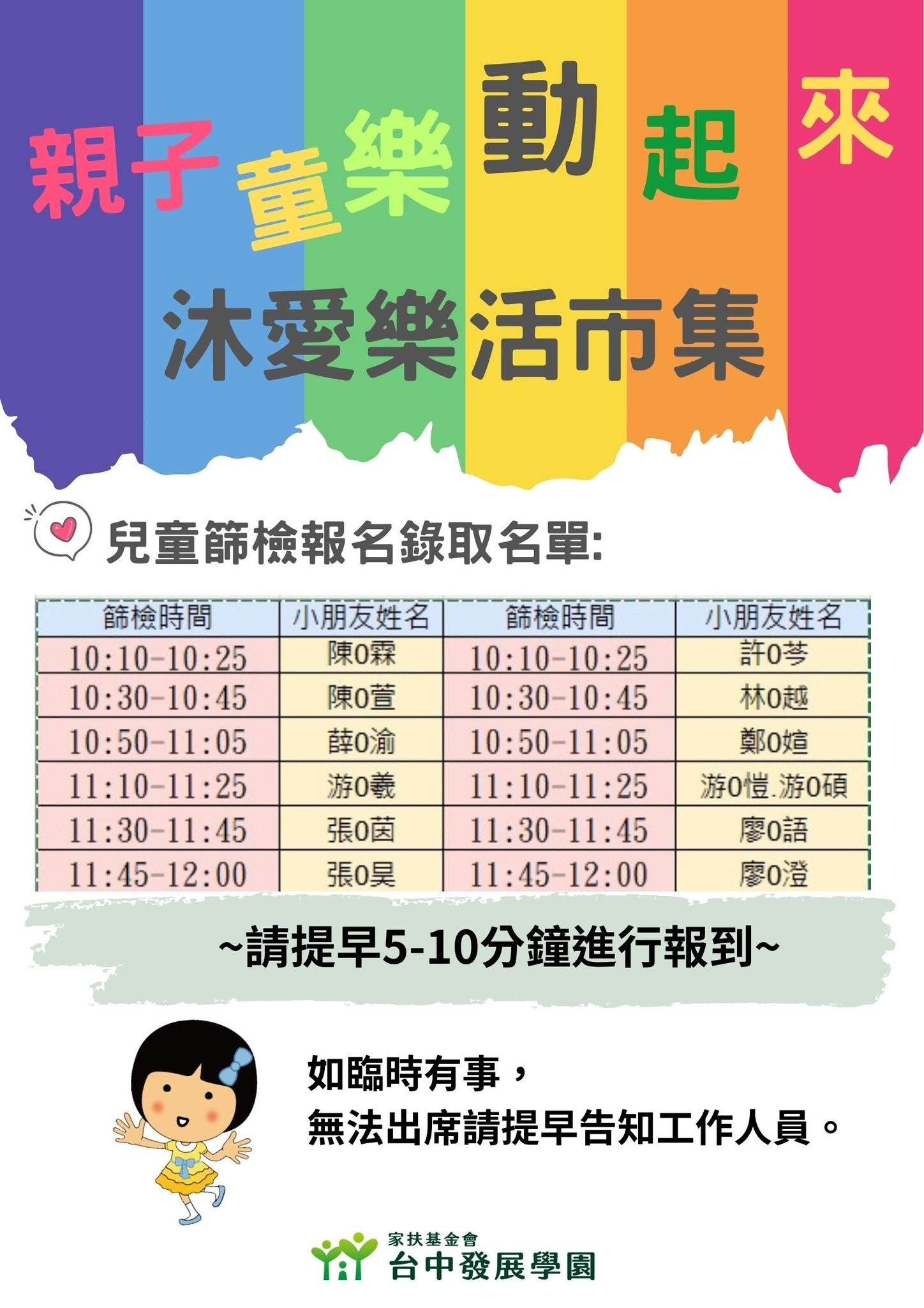 👉當天兒童篩檢-報名錄取名單,如海報。