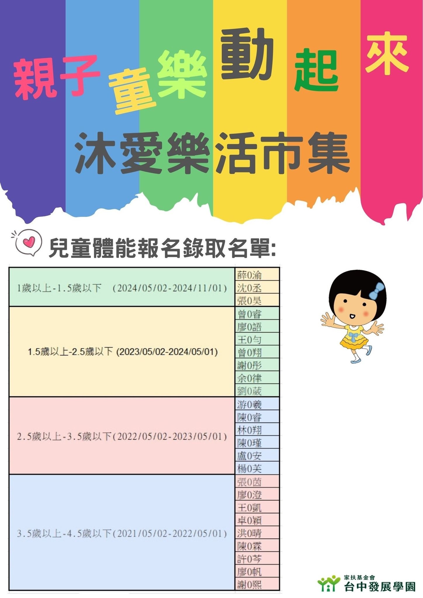 👉兒童體能活動-報名錄取名單,如海報。