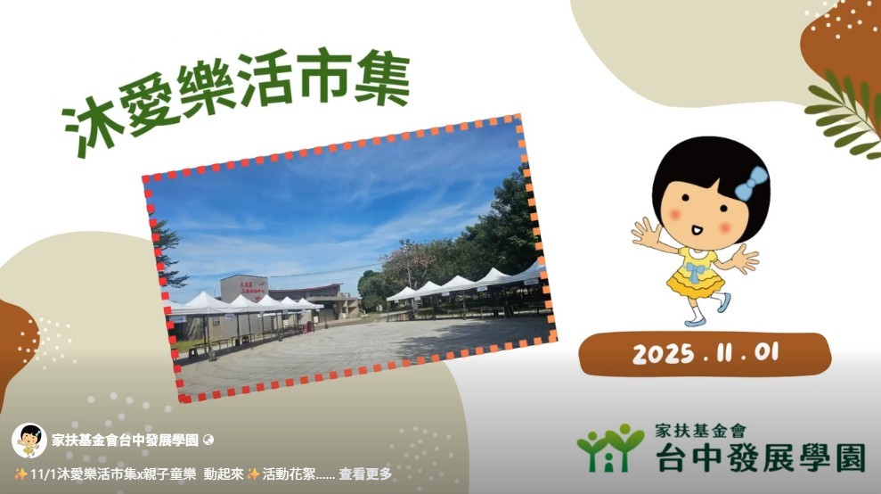 家扶基金會台中發展學園 📣為了喚起社區民眾對兒童發展的重視 於11/1與大里非營利幼兒園合作舉辦沐愛樂活市集