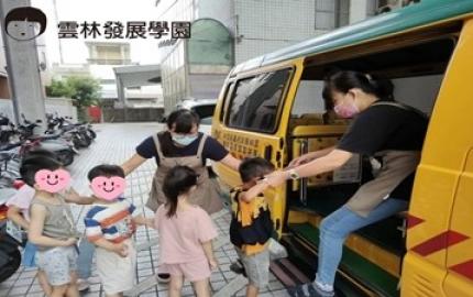 【快樂成長營-娃娃車乘車安全】 今天老師教導我們搭乘娃娃車的乘車安全唷! 老師先播放娃娃車乘車安全影片宣導基本概念, 老師們再帶著我們一起到娃娃車進行逃生演練,