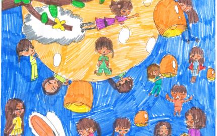 這幅畫是我們機構的少女所創作,她用童趣與色彩描繪出中秋節的溫馨氛圍,畫中的每個人物都象徵著我們生活中的陪伴與愛,象徵團圓的月亮和可愛的兔子更提醒我們分享與祝福的重要。感謝這群孩子帶...