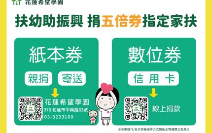 👉鏘鏘🎉~五倍券開於10月8日正式開放使用囉~ #讓五倍券變成愛心無限倍 不管您是用紙本五倍券還是數位綁定五倍券 都可以用來做愛心喔~ 歡迎使用以下方式捐贈~ 1️⃣紙本:親送或者郵寄到花蓮希望...