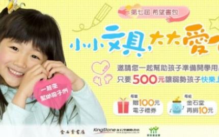 第七屆希望書包活動開始起跑囉! 目前離目標尚有4476份 多一份認購,就能有多一位孩子因此受惠 而一位願意努力的孩子,不該因為資源的落差而影響學習 期許有一天 這些孩子,都能擁有平等的...
