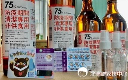 感謝社團法人高雄市自然人文珍愛協會李自強理事長捐贈酒精與分裝瓶