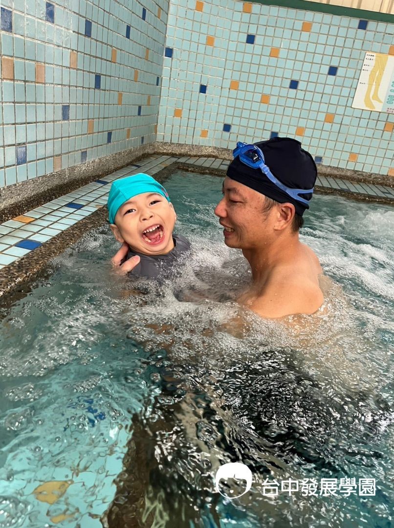 平常吃飯常常卡卡的小紘,在水裡竟然會乖乖抿著嘴,還能自己鎮定調整,不慌不亂!而不好入睡、半夜常驚醒,只要來過泳池,晚上就能一覺到天亮,讓爸媽超感動。 最怕轉換環境的小叡,一開始嚇得大哭,還好有治療師和媽媽的陪伴,慢慢適應搖晃感,甚至能接受志工幫忙觸碰,進步超大!